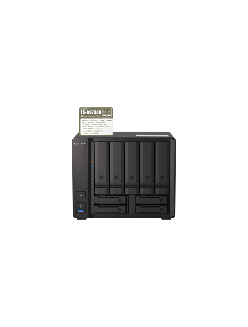 QNAP TS-h973AX-32G | 10GbE, 9-Bay, ZFS, AMD Ryzen CPU, 32GB RAM, SMB NAS